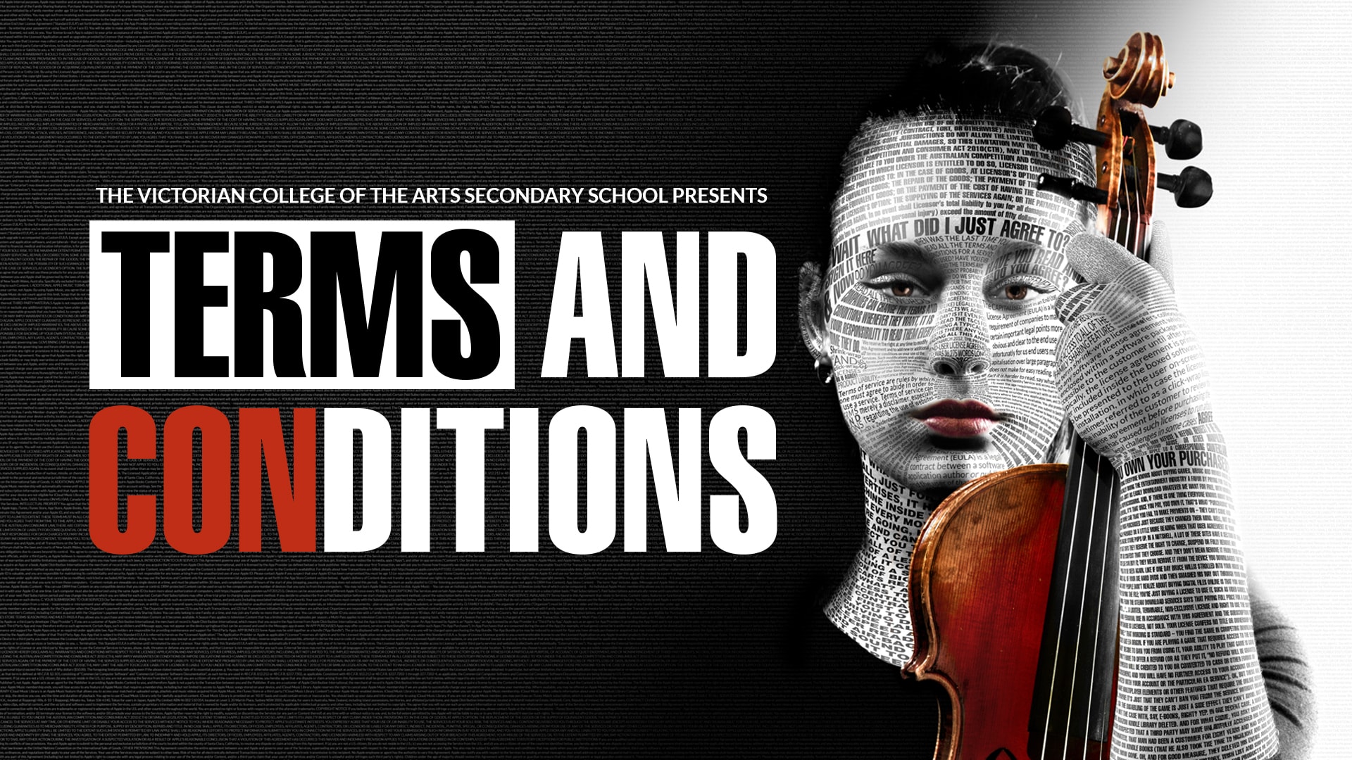 Young soloists and ensembles from the Victorian College of the Arts Secondary School present a program exploring interactions between young people and technology featuring the world premiere of Stefan Cassomenos’ Terms and Conditions.