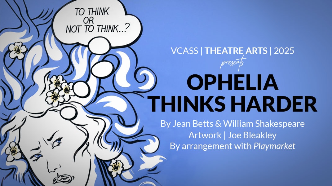 The graduating class of VCASS Theatre Artists 2025 is proud to present Ophelia Thinks Harder. Jean Betts’ adaptation of Shakespeare’s Hamlet usurps its central character to give many of his most famous monologues instead to Ophelia. Betts also samples text from Macbeth, Romeo and Juliet and The Tempest, ruthlessly reassigning dialogue to create this original work, which is on one level a ferociously funny pastiche of Hamlet and on another, a hilariously savage indictment of male pomposity, oppression, sexism and misogyny.