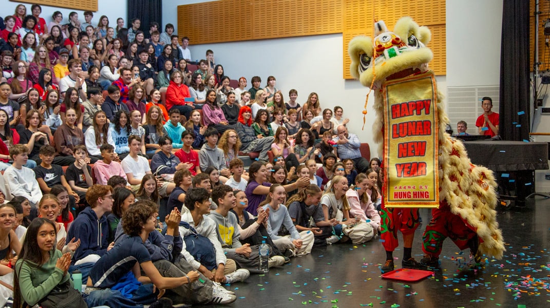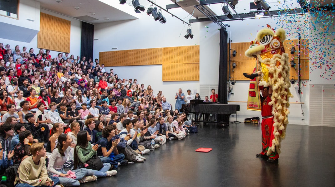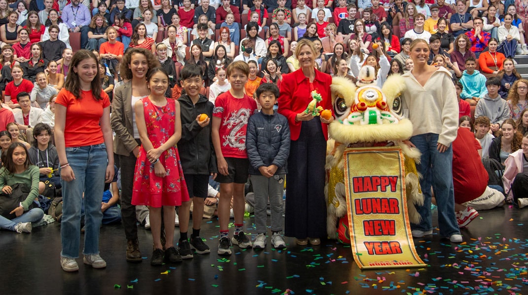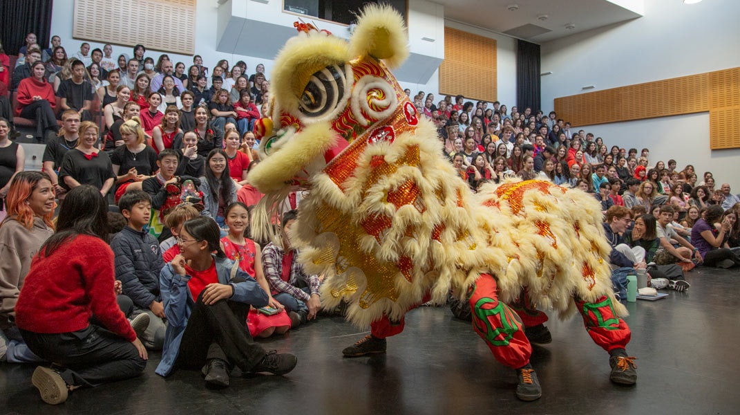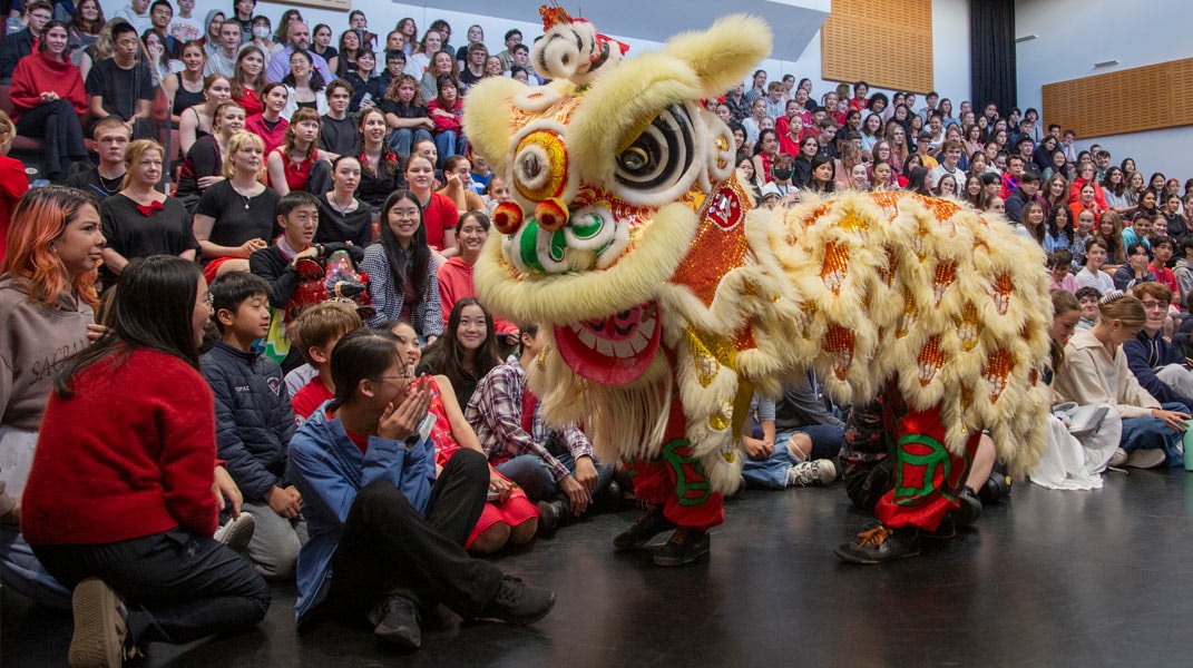 To kick off the assembly, the students had a wonderful, novel experience taking in the bright, vibrant colours and energetic drum beat of the traditional Lion Dance. They learned about the origin of the Lunar New Year. The story of Nian, the vicious monster who was scared of loud noises, fire and the colour red — and how it shaped the traditions of the Lunar Festival. And the entertaining, comedic play from the Theatre Arts students on the story behind the 12 zodiac animals. The assembly ended with a beautiful piano trio rendition of The Butterfly Lovers from 3 music students.