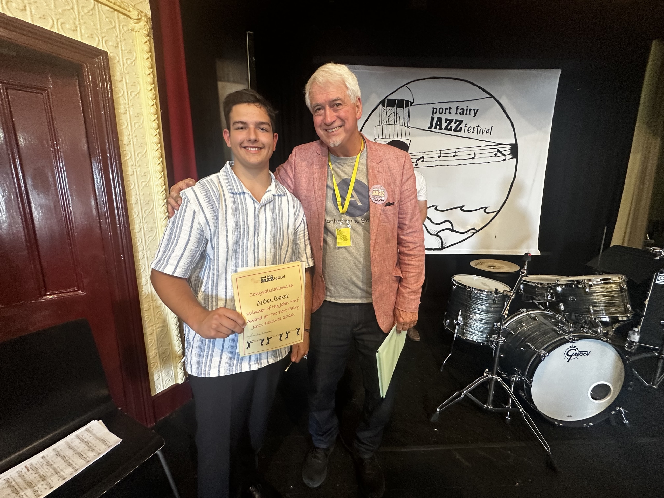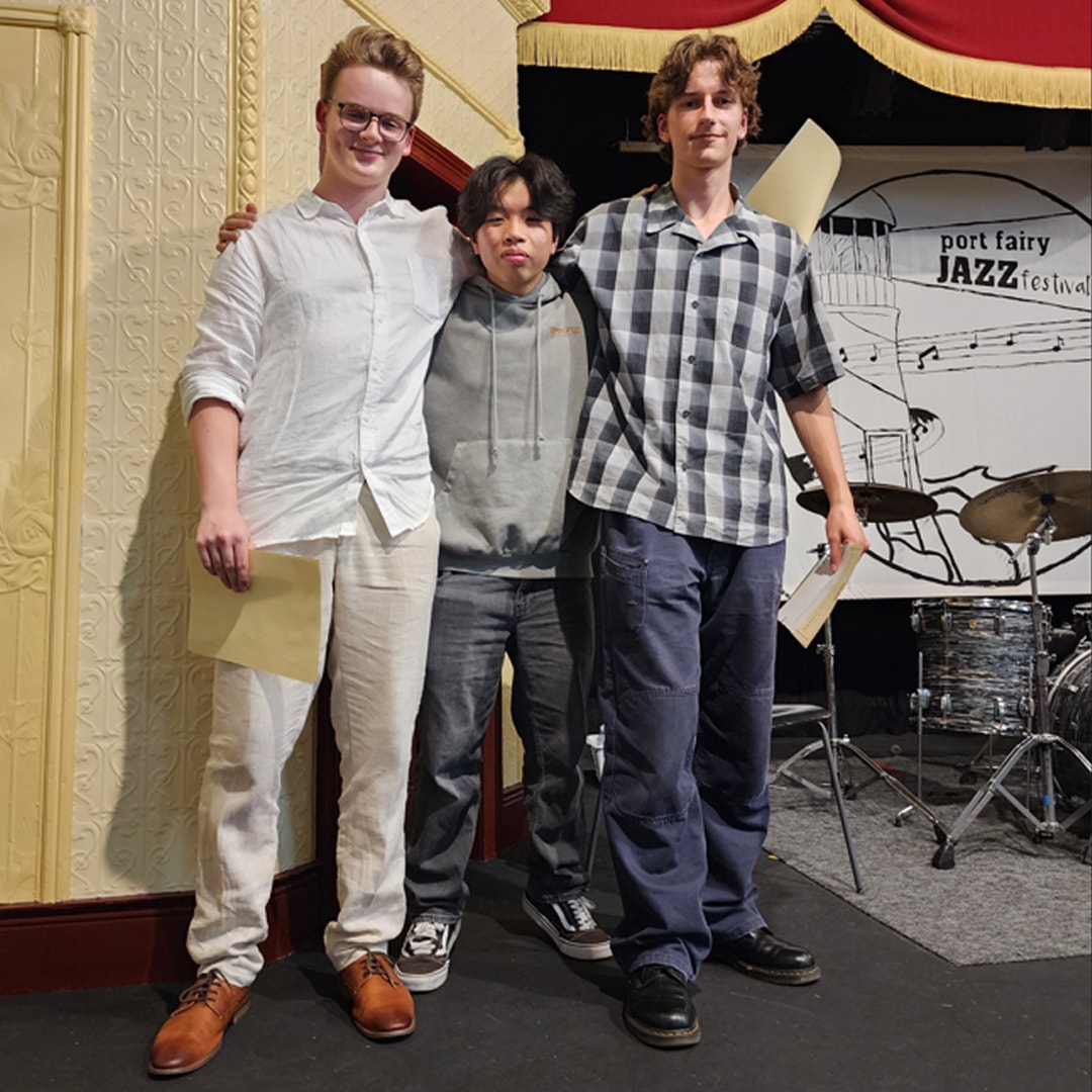Port Fairy Jazz Festival Success Congratulations to Year 11 student Arthur, who took home 1st Place in the John Huff Award! As the youngest of five finalists, Arthur performed against musicians up to age 25—an incredible feat at just 16 years old. He was accompanied by alumni Jay-Keane Lee, Cam Edwards and Year 11 Music student Ethan. We also celebrate Jay who took first place, Ethan 2nd place, and Cam Edwards Third place in the John Huff Awards at the 2025 Port Fairy Festival Festival.