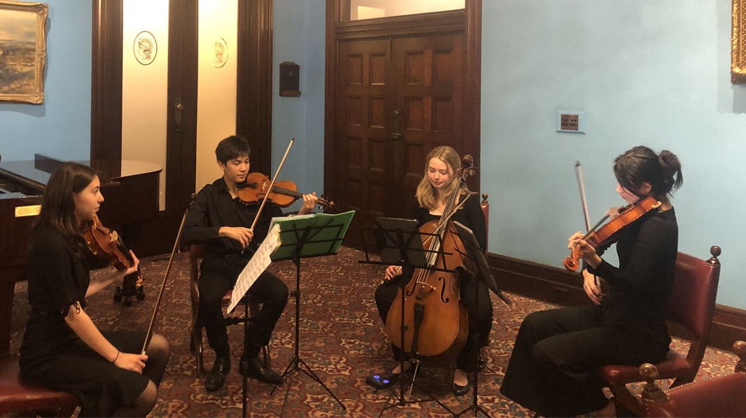 The Clerici String Quartet (Xavier, Candice, Mahalia, Hannah) recently made the most of an opportunity to perform at the Athenaeum Club Music Luncheon, a series curated by longtime VCASS staff member Tony Gould AM. The quartet presented an eclectic and spirited program for an enthusiastic and discerning audience. Between performances the quartet discussed life at VCASS, future aspirations, music, art and an array of other topics with club members and guests.
