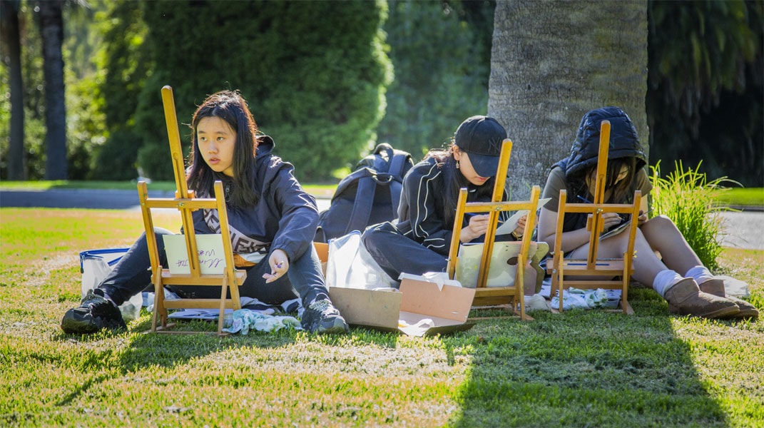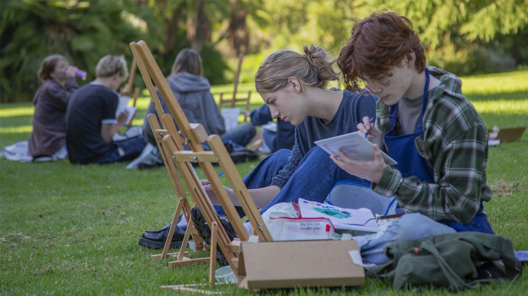 Across Term 1, Year 11 Visual Arts students studied oil painting with landscape painter Mia Schoen. Working en plein air (outdoors), each image is a record of the painter’s experience in dealing with the session’s often -shifting weather and lighting conditions. These works were exhibited in the Kolarik gallery and VCASS Café. The title of this exhibition, Recharge the Brush comes from the students’ affection for Schoen’s description of the act of reloading the paintbrush with pigment during the process of painting.
