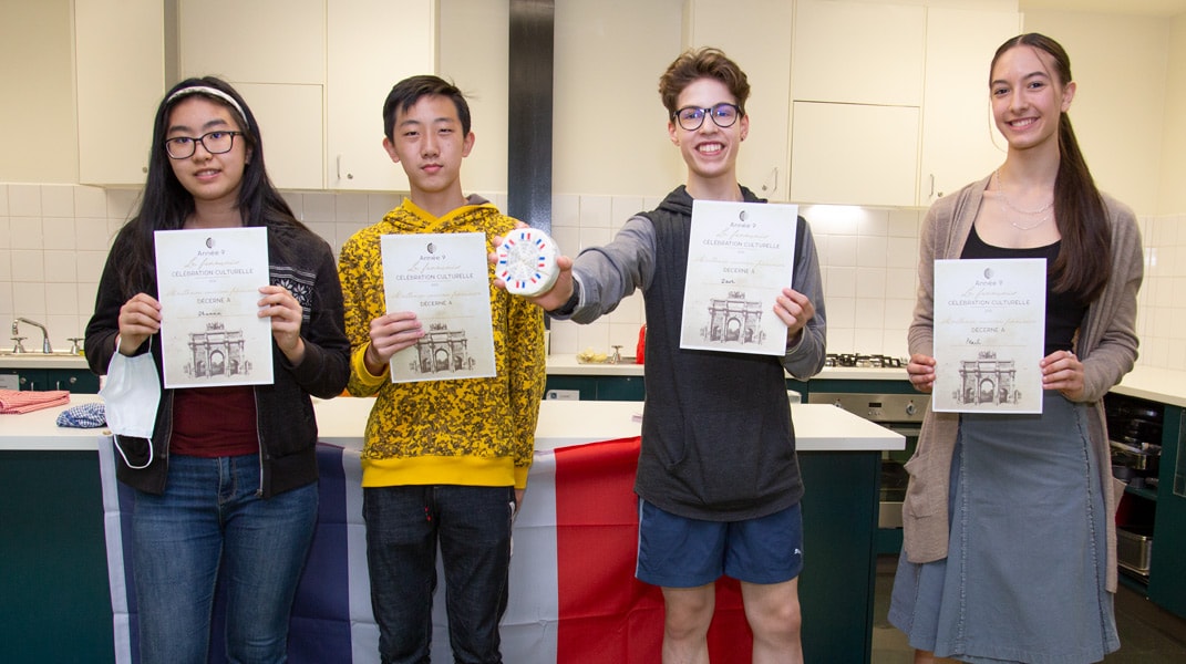 To celebrate the end of another unprecedented year, the Year Nines prepared a French meal that they shared with other members of their class. It was wonderful to see their typical homemade French meals such as ‘Quiche Lorraine,’ and desserts and cakes, such as ‘crêpes’ and ‘Madeleines’. After eating their delicious three-course menu, we all played ‘French Trivial Pursuit’ in teams. It was a great way to finish off yet another interrupted year…