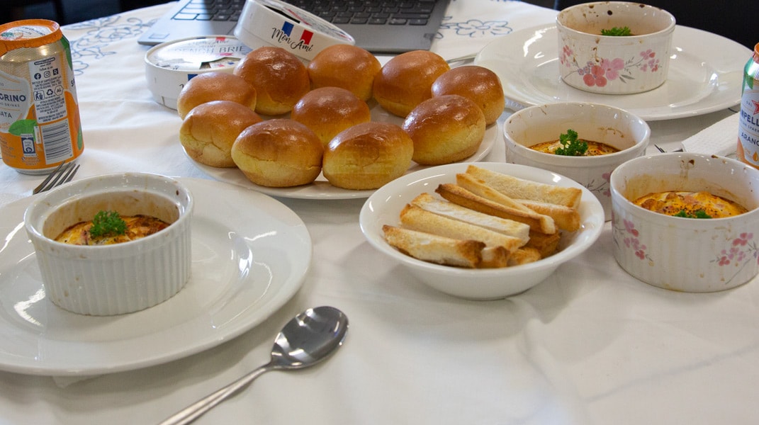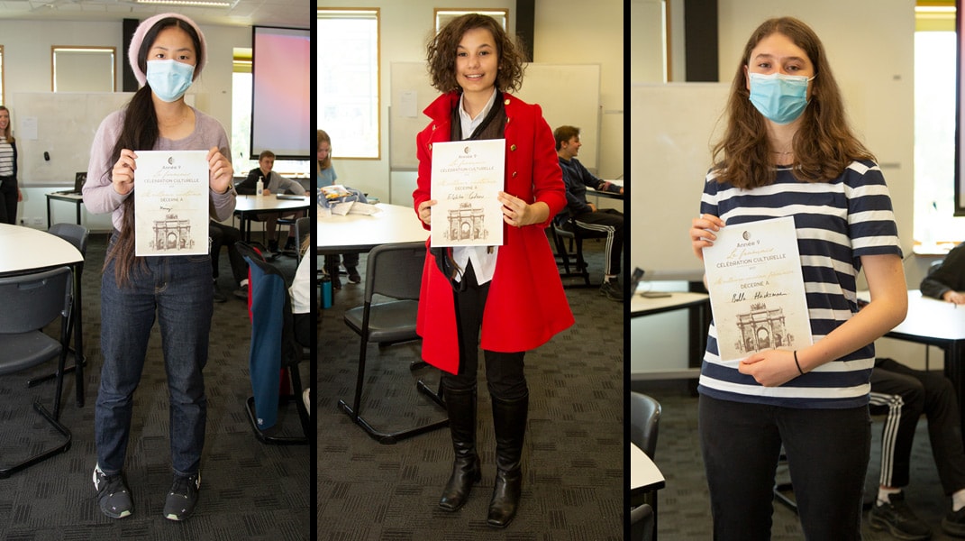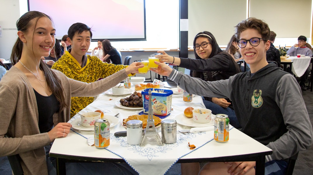 Pour célébrer une fin d’année exceptionnelle, les neuvièmes années ont préparé un déjeuner typiquement français qu’ils ont partagé avec leurs camarades de classe. C’était magnifique de voir leurs plats typiques « fait maison » comme la quiche lorraine, et les desserts, et les gâteaux, comme les crêpes et les madeleines. On en a eu l’eau à la bouche toute la matinée! Après avoir mangé leur délicieux menu à trois plats, on a joué au « Trivial Pursuit français » en équipe pour finir. C’était un super événement pour terminer cette année encore interrompue…