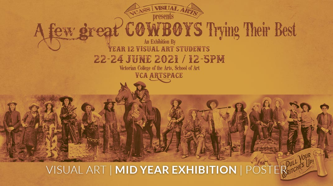 Our talented Year 12 artists were up next with their mid year exhibition VISUAL ARTS | A Few Great Cowboys Trying Their Best. Held over three days in the VCA Art Space just down the road from VCASS, from 22 – 24 June. The exhibition is a great way to see what our student artists have been up to in Semester One. The exhibition has been captured using a 360 photographic camera and will soon be available to view online, keep your eyes open for that!