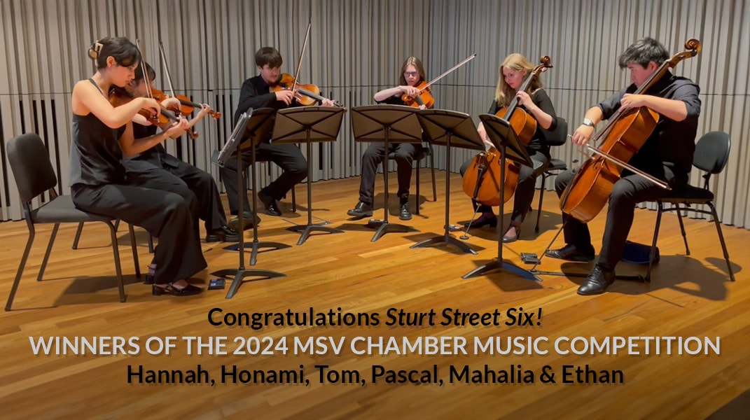 The Musical Society of Victoria (MSV) has a proud history since 1861 and has played a vital role in the growth of instrumental music in Victoria. MSV offers a series of annual awards and competitions to young musicians. VCASS is proud to announce that Ensemble group Sturt Street Six featuring VCASS Music students Tom, Hannah, Honami, Pascal, Mahalia and Ethan won the MSV Chamber Music Competition 2024. Congratulations to you all!
