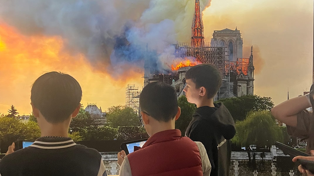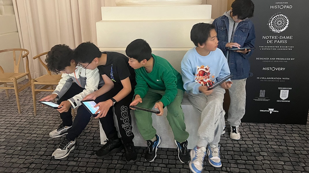 Guided by the interactive HistoPad—a handheld device that brings historical sites to life—students journeyed through key moments in Notre-Dame’s 850-year timeline. Through detailed 3d reconstructions and 360-degree visuals, they gained new perspectives on the significance and enduring legacy of this iconic monument.